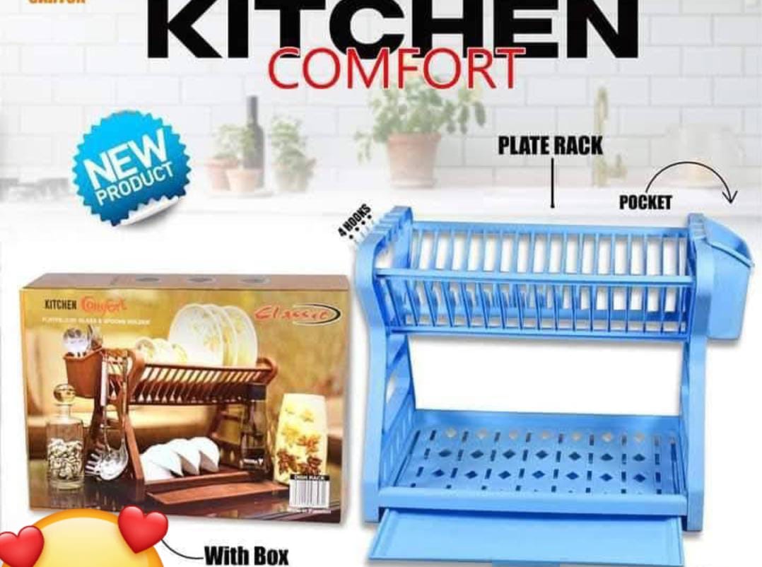 The 2 Tier Kitchen Platerack is the perfect solution for organizing your plates while also providing a place to dry your dishes and hold your spoons. With two tiers, you can easily separate your plates and still have plenty of space for drying. Keep your counters tidy and your dishes organized with this must-have kitchen accessory.