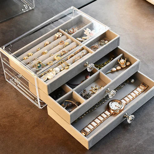 Organize your jewelry collection with our Acrylic 3-Drawer Jewelry Organizer. This sleek and functional organizer is made of durable acrylic and features 3 drawers for easy storage and access. Keep your jewelry tangle-free and at your fingertips with this must-have accessory.