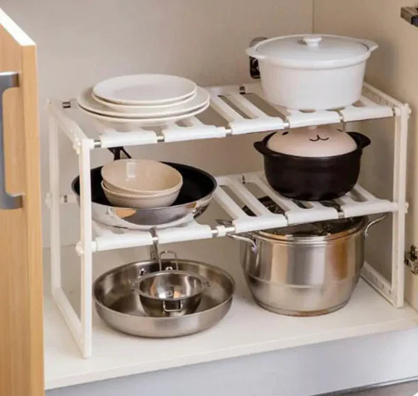 Efficiently organize your under sink space with our Adjustable Under Sink Organizer. Its adjustable design allows for flexible storage, while minimizing clutter and maximizing functionality. Expertly crafted to optimize any sink area, providing a clean and practical solution.