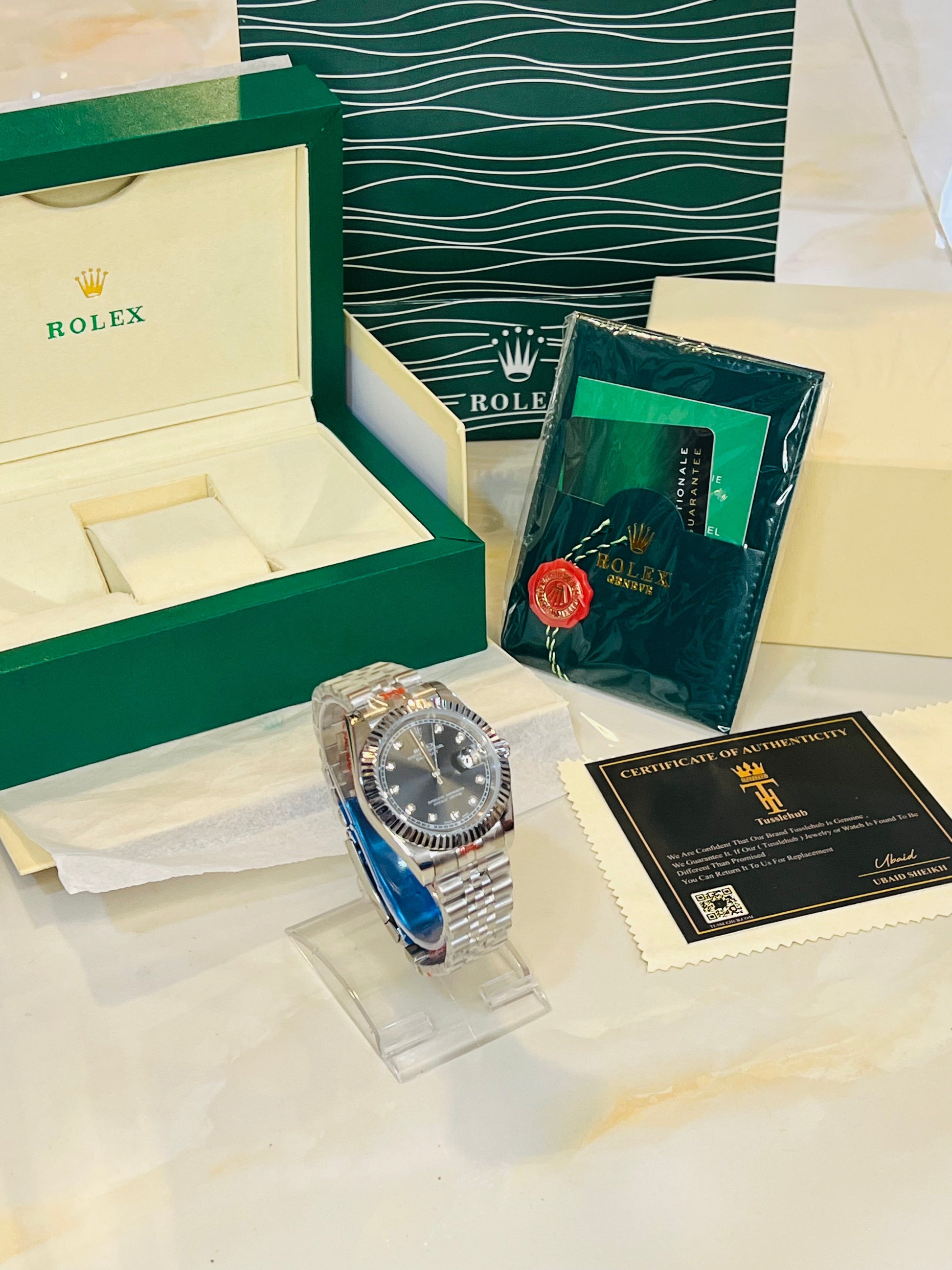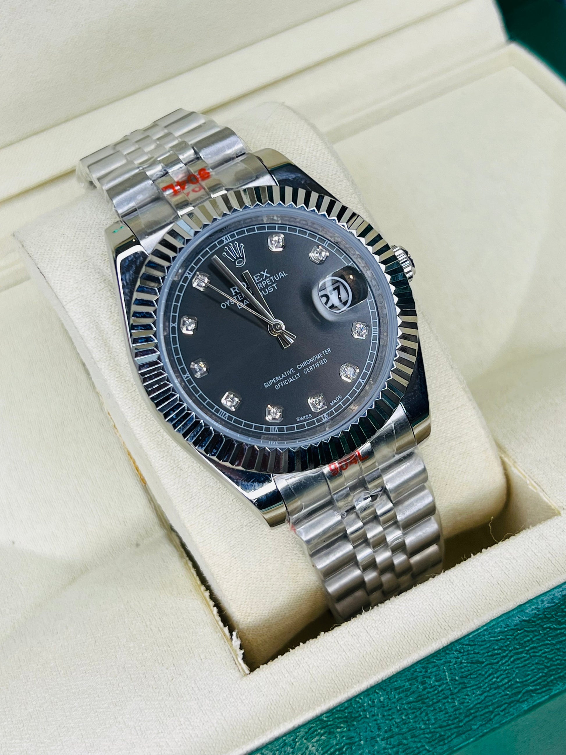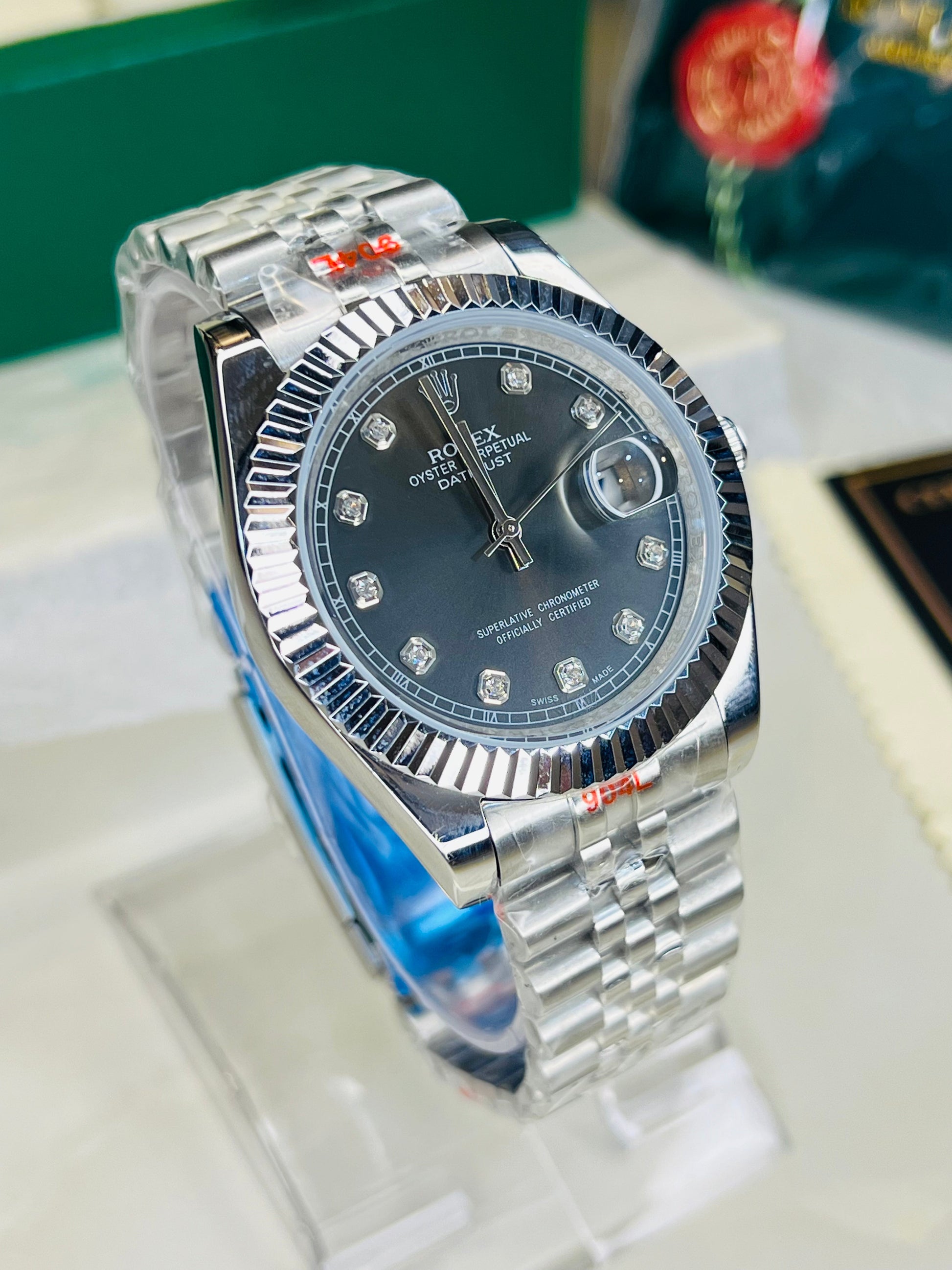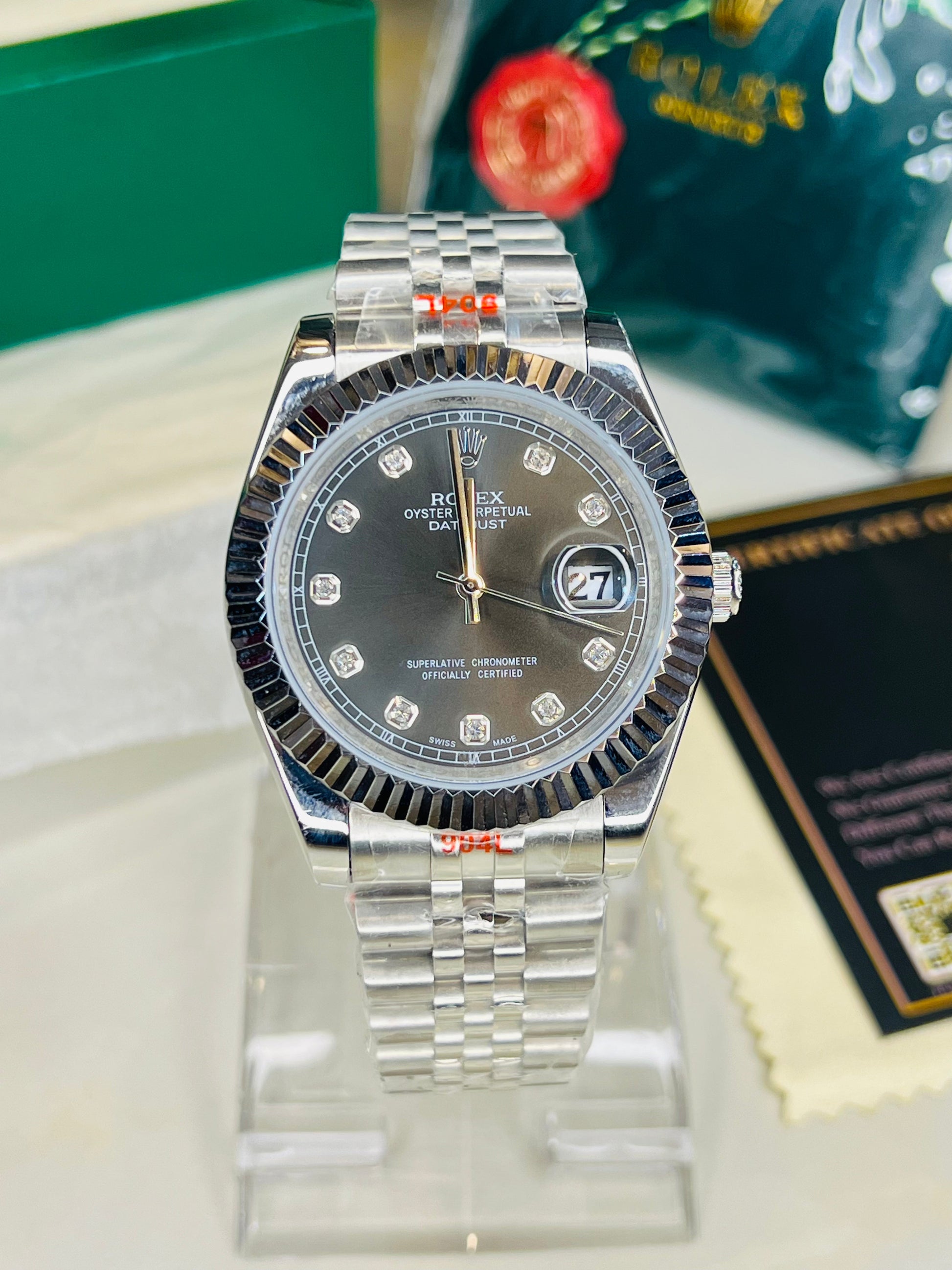 Date Just Silver Metallic Grey Dial Quartz Master Clone Watch