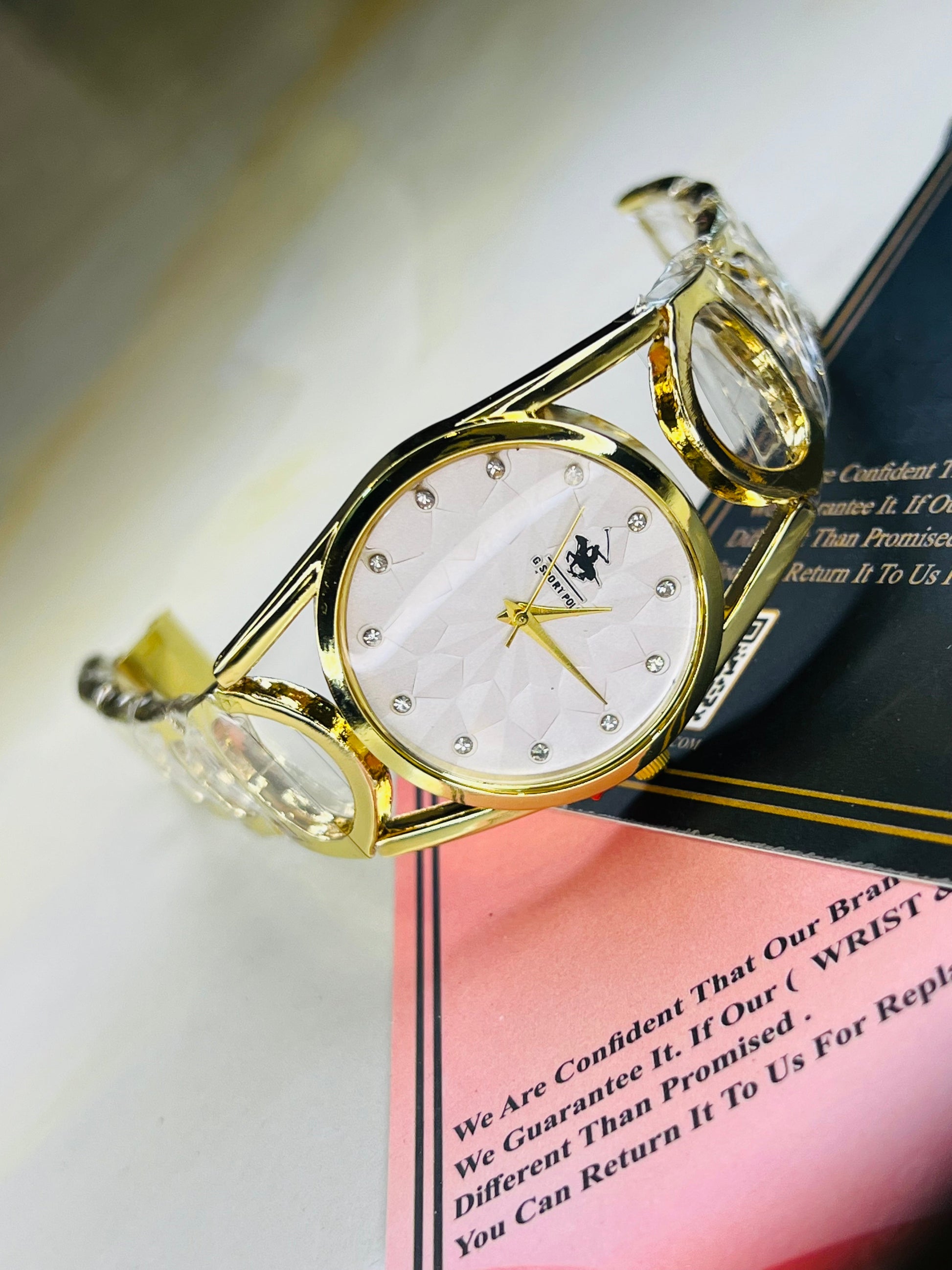 Gold White Circle Bracelet Watch For Her