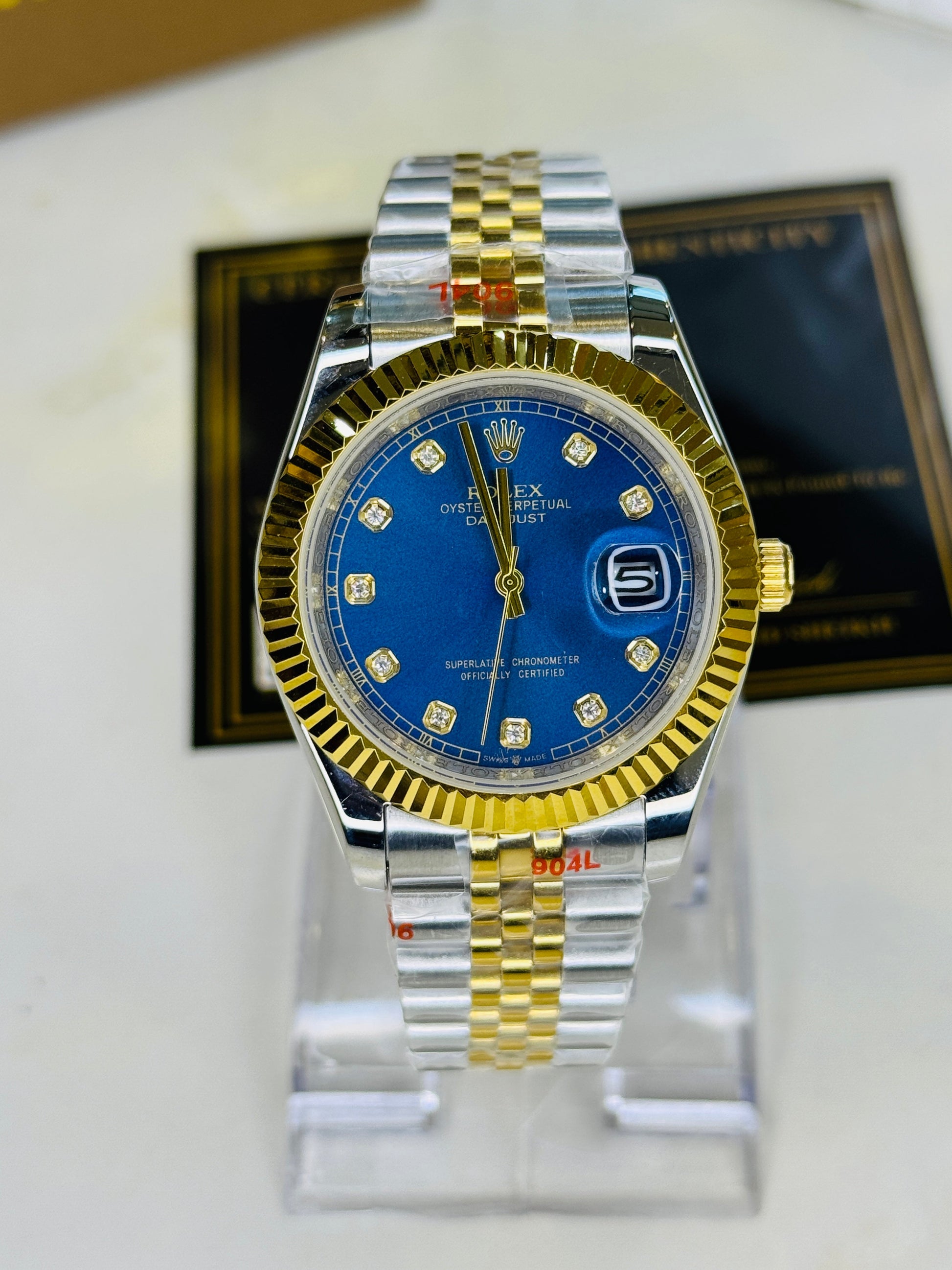 Jubilee Date Just Two Tone Diamond Fluted Blue Dial Quartz Watch