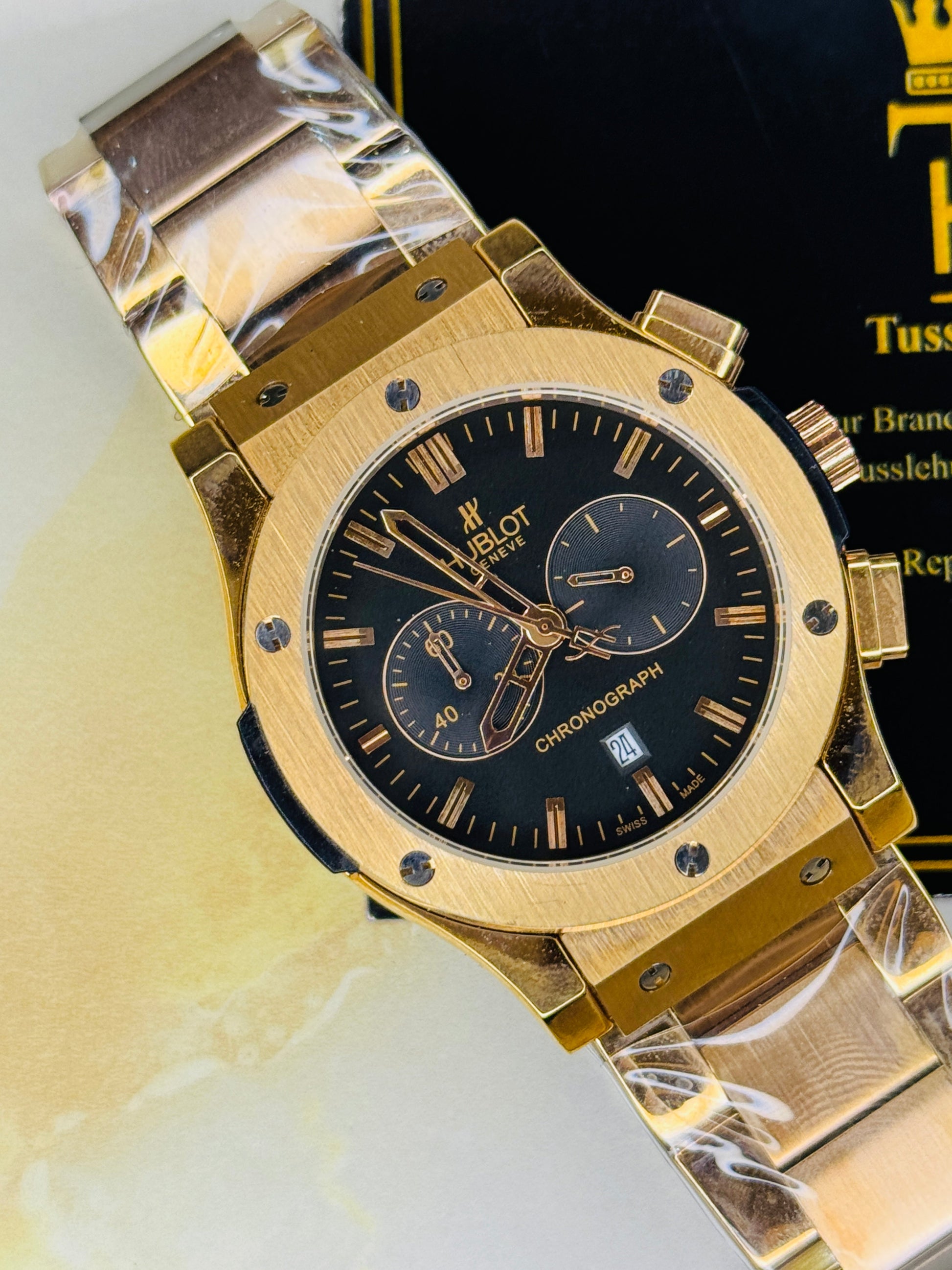 Minimal Rose Gold Black Dial Super Clone Chronograph Hublot Watch