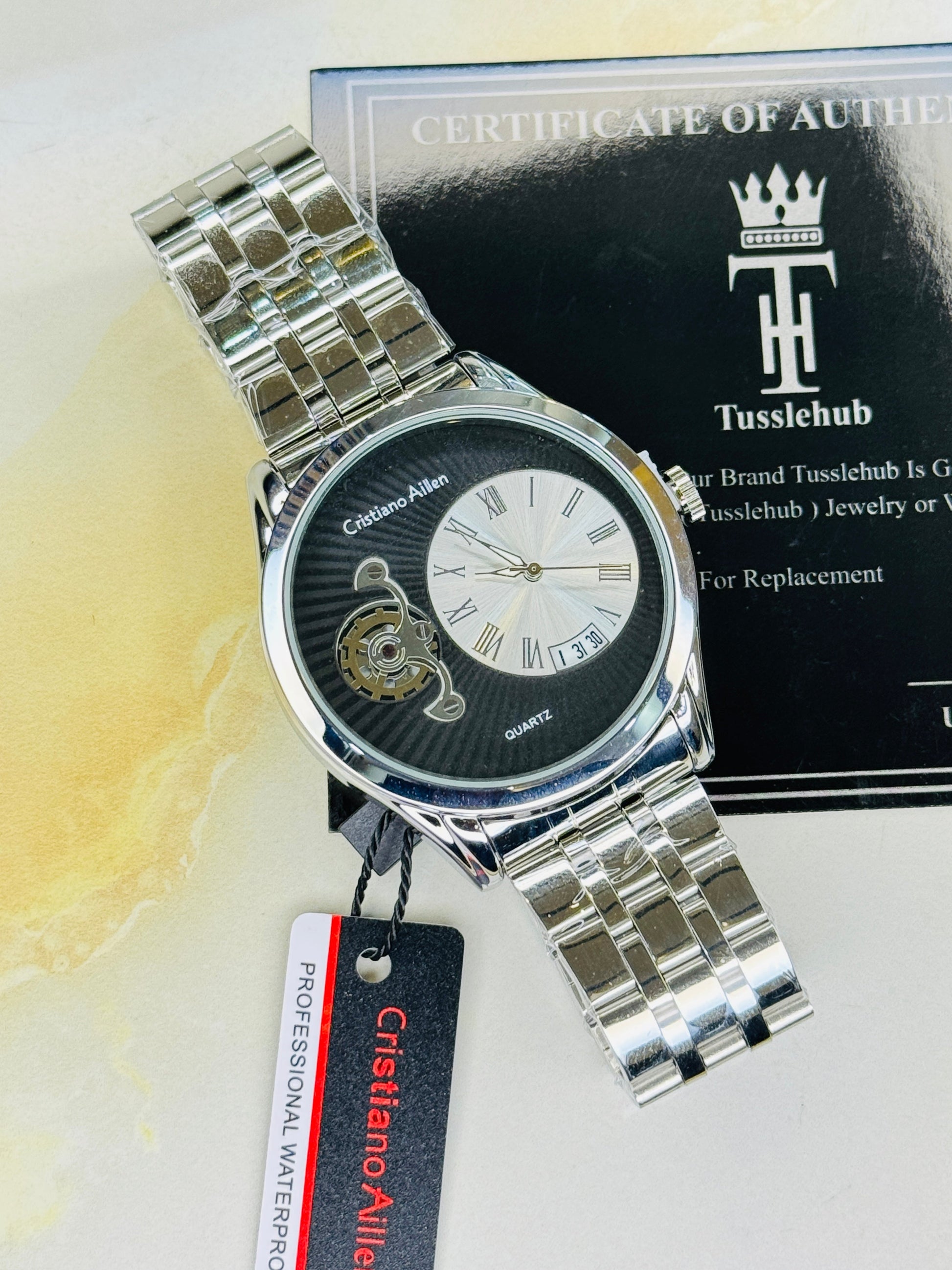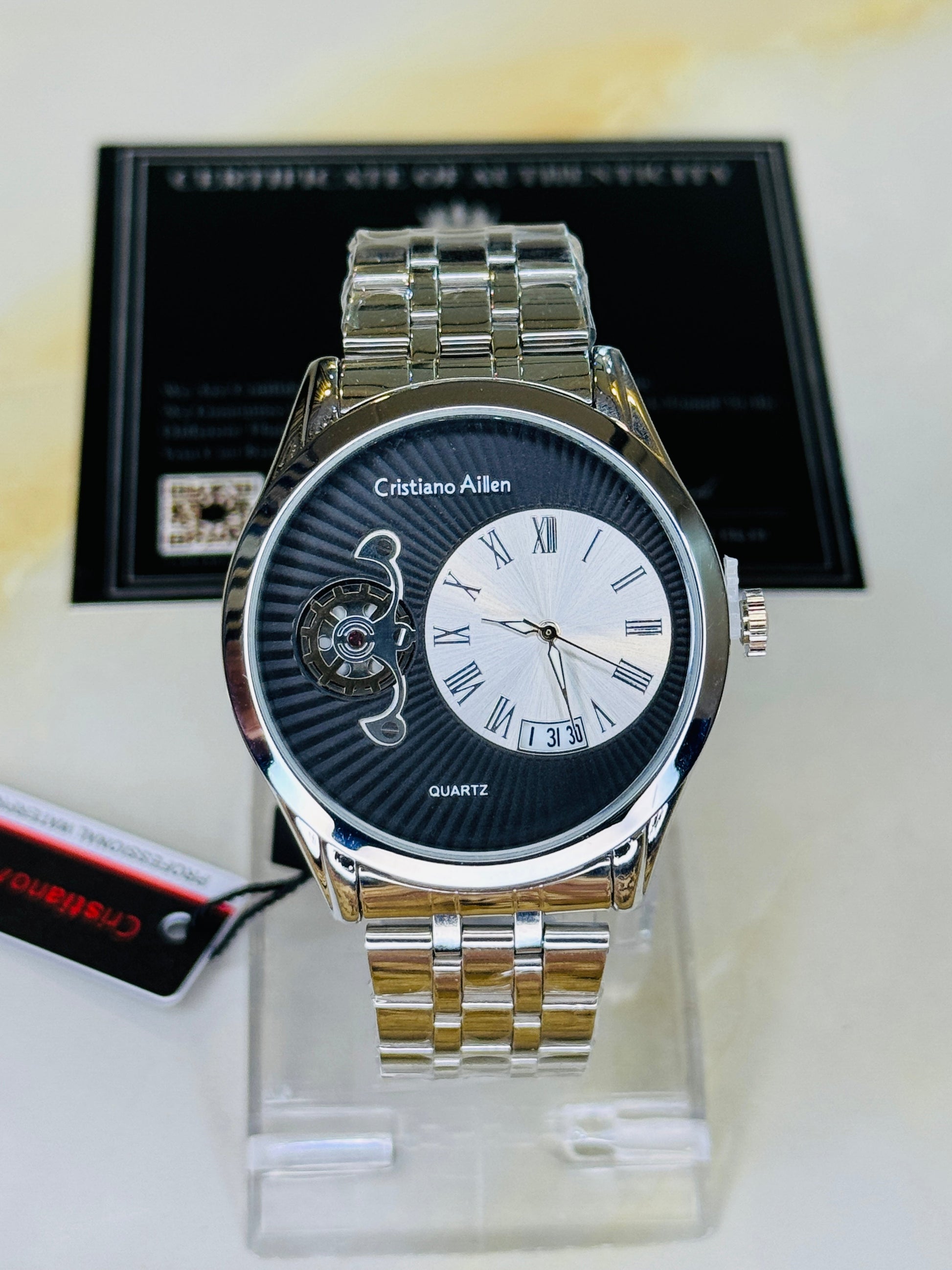 Silver Cristiano Aillen Black Spiral Gear Dial Watch