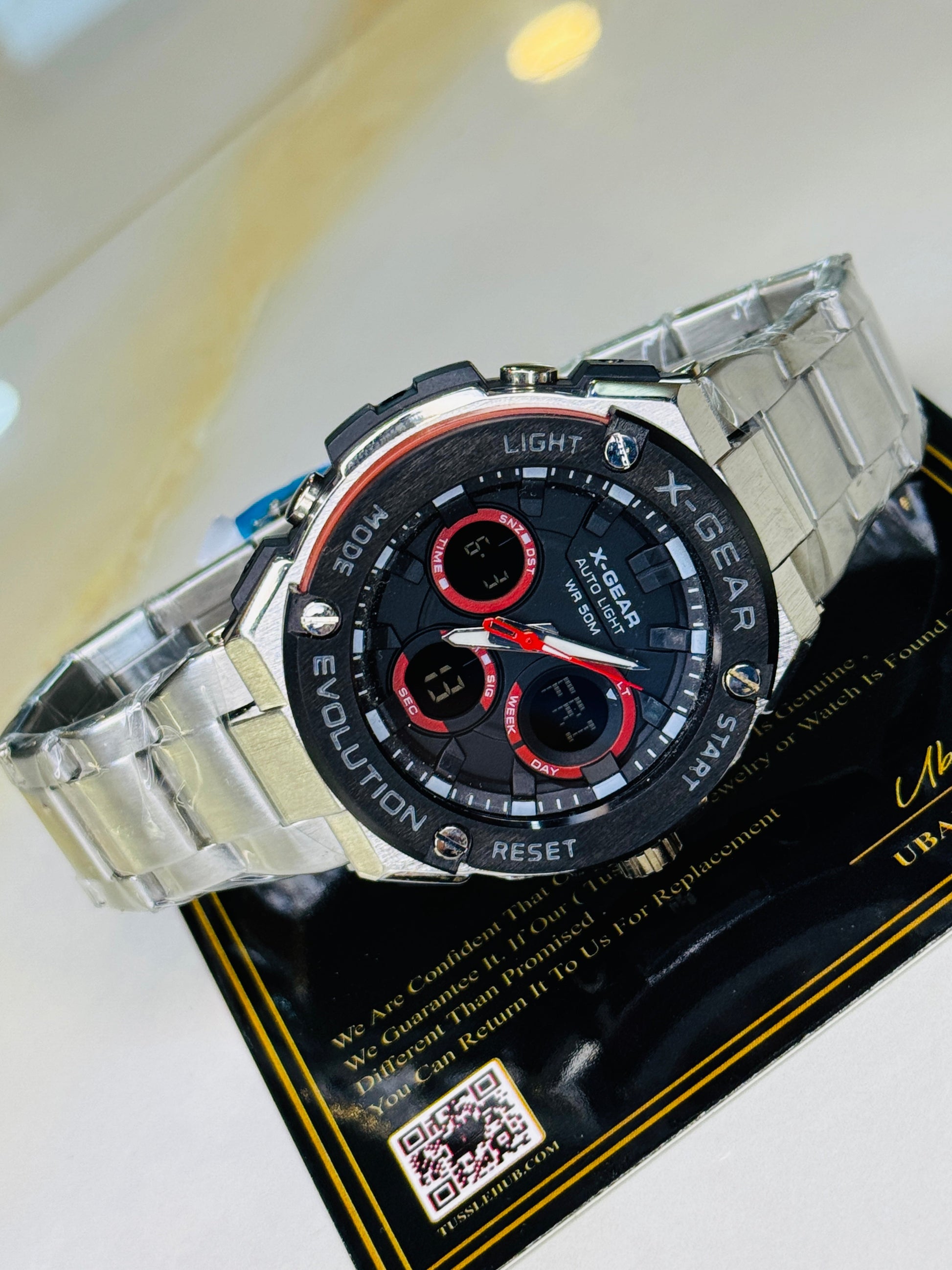 Silver Red X-Gear Evolution Chain Straps Sports Watch