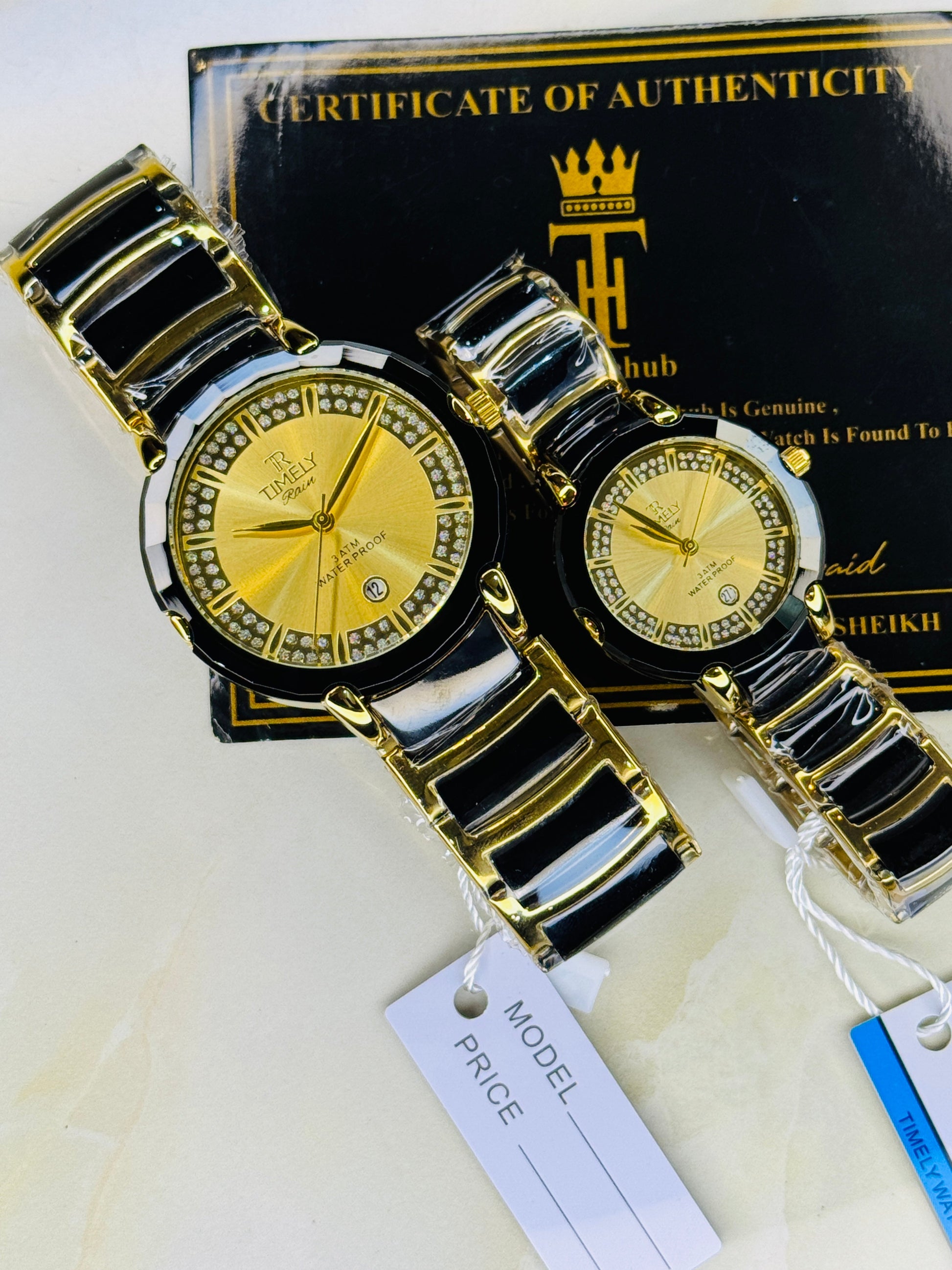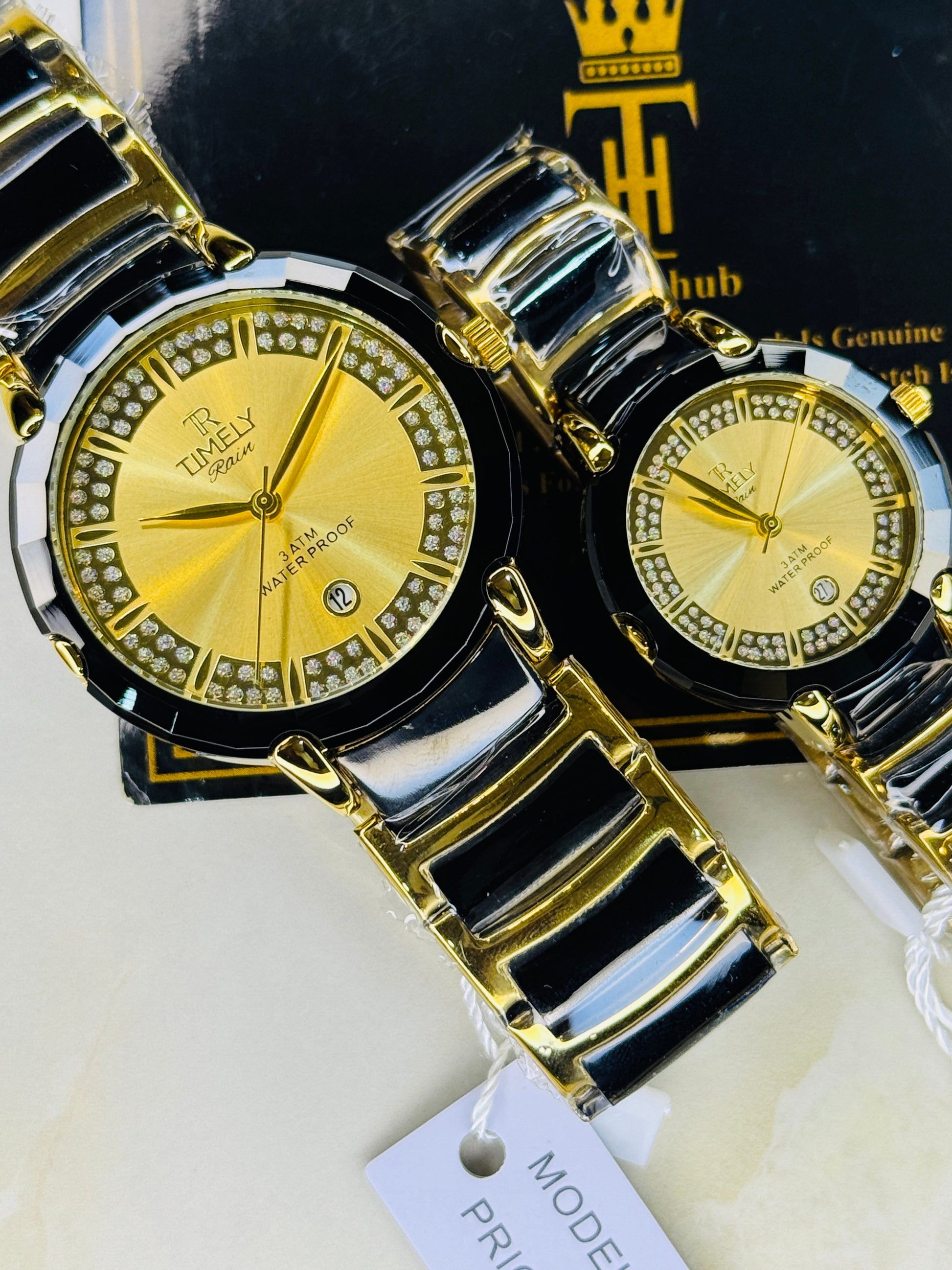 Timely Black Gold With Gold Dial Couple Watch
