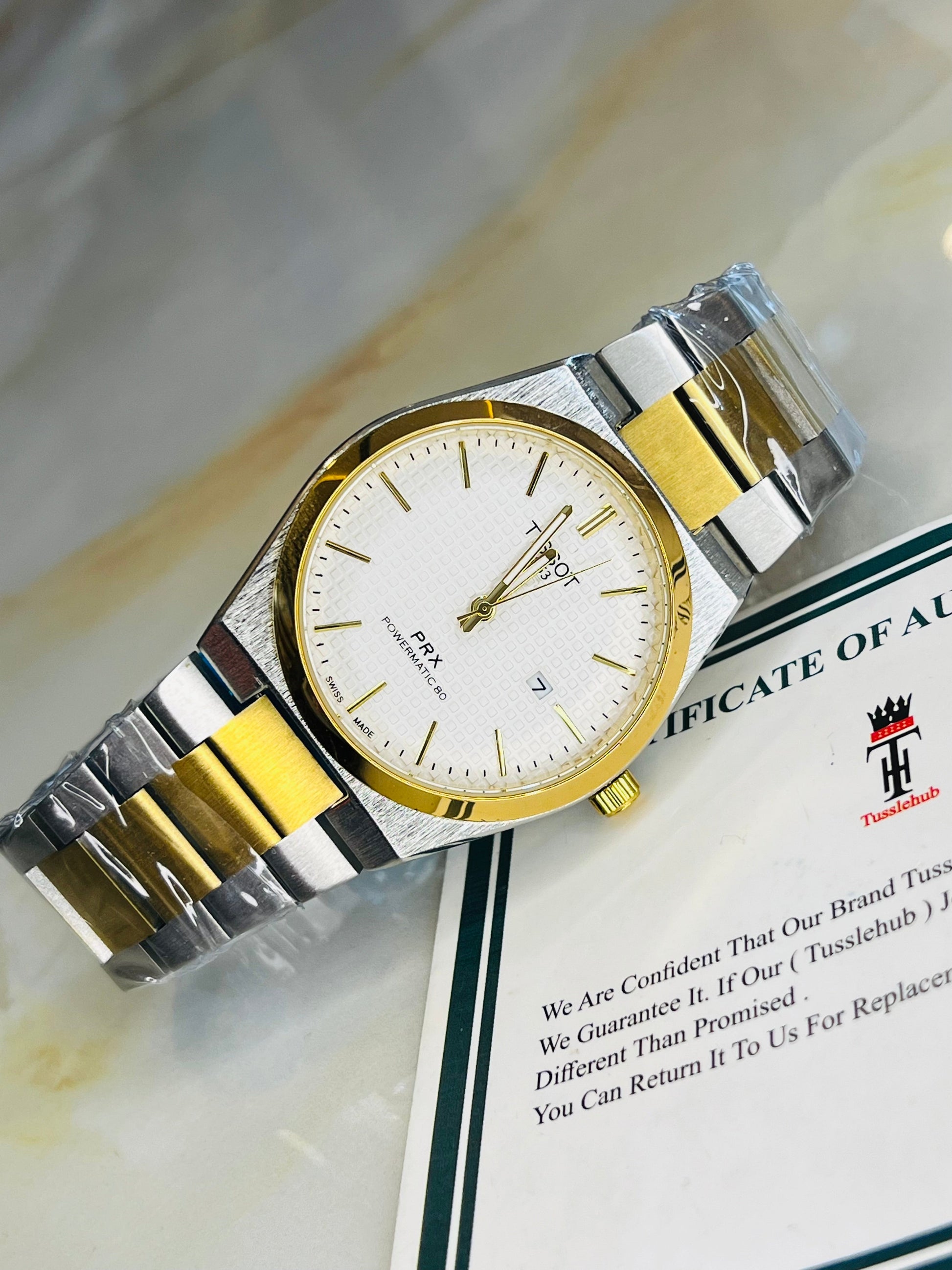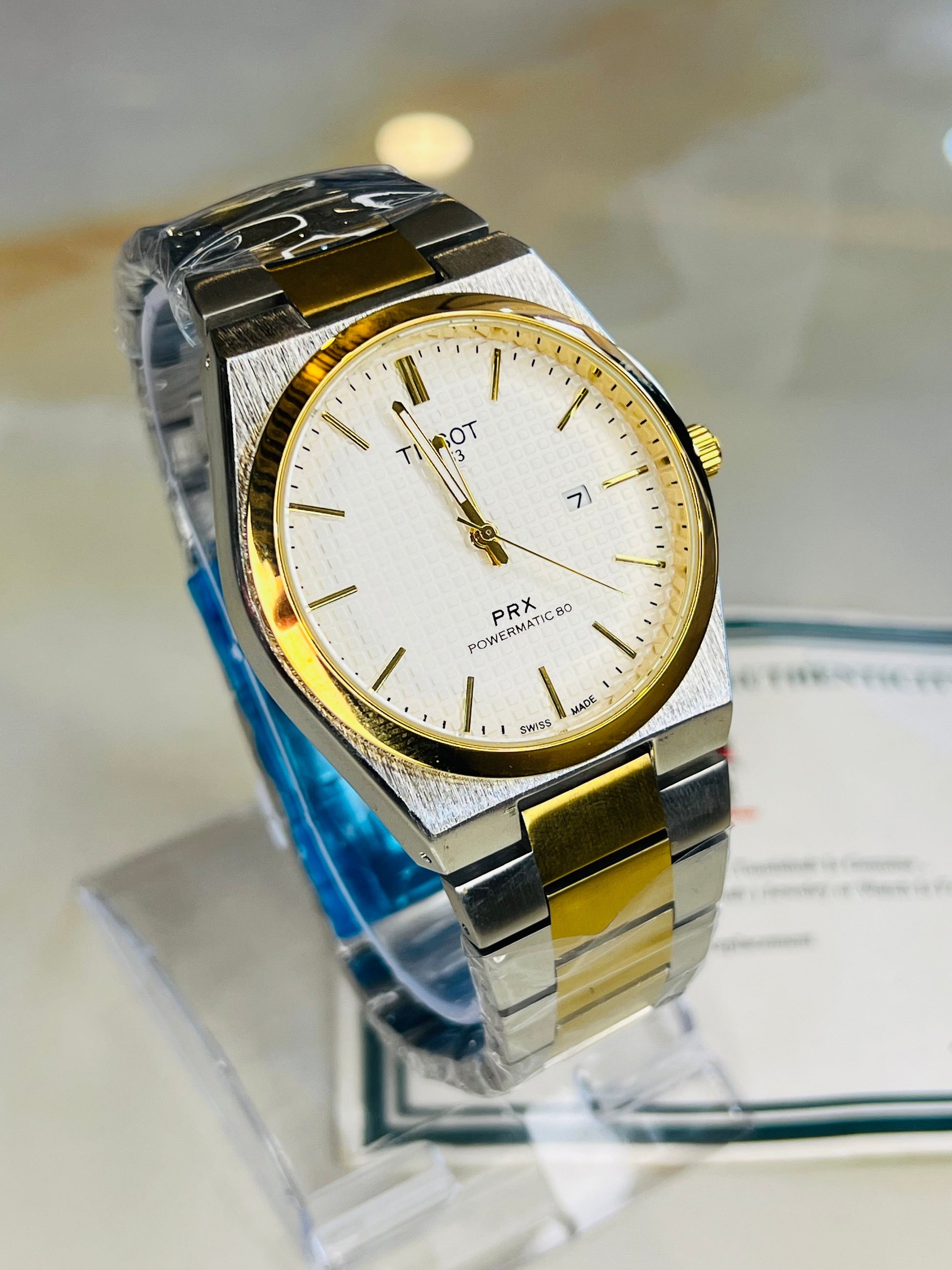 Tissot PRX 1853 Gold Silver With Textured White Dial Watch