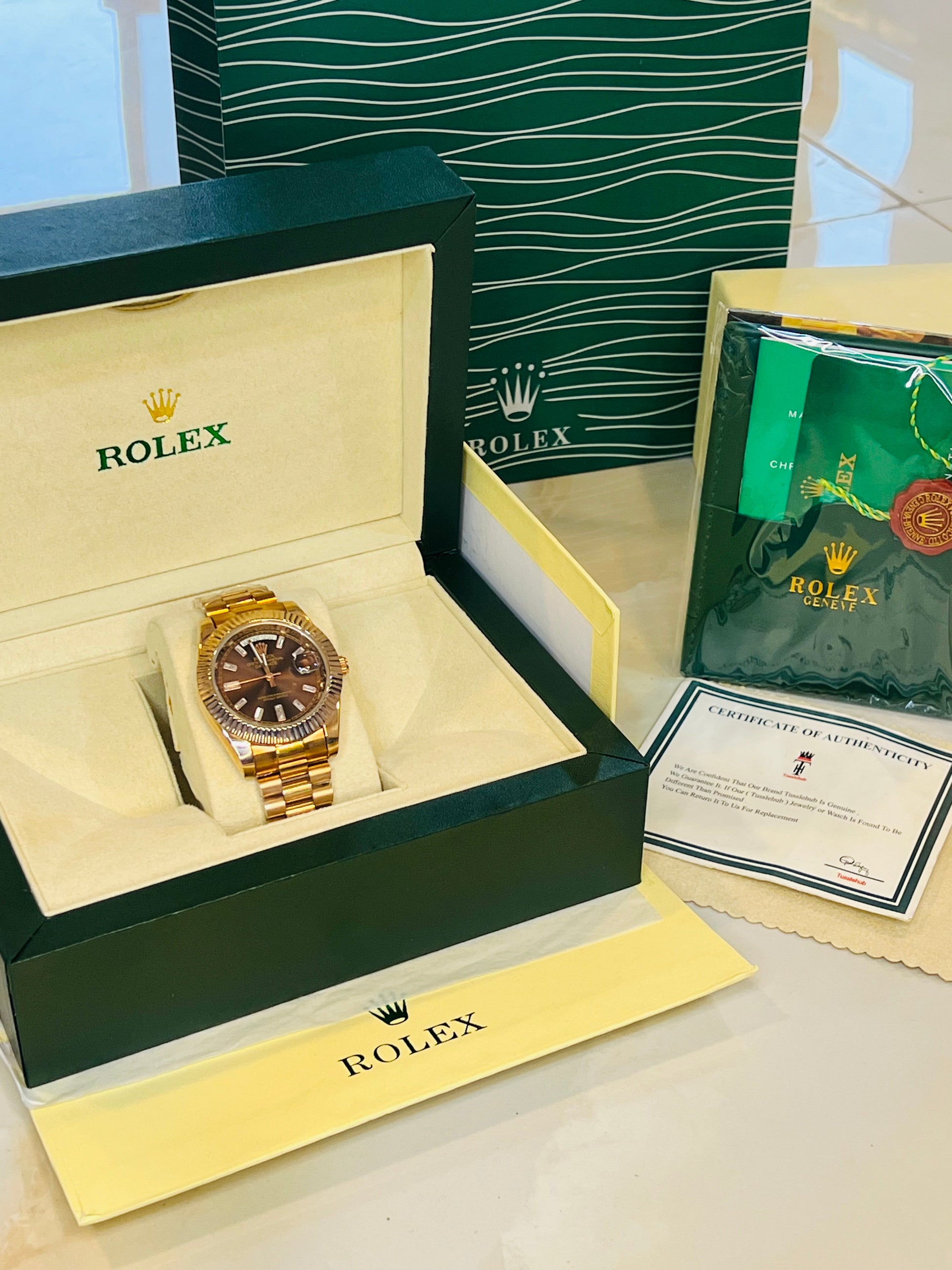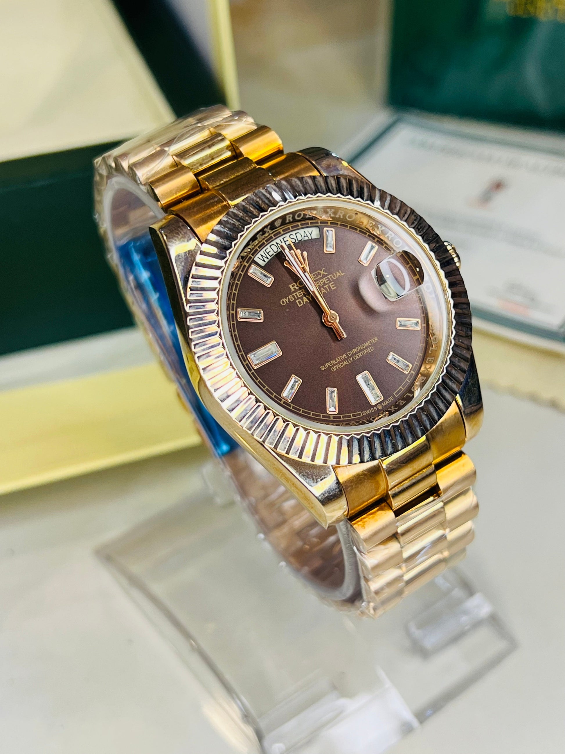 Rose Gold Chocolate Gems Automatic Day Date Super Clone Watch