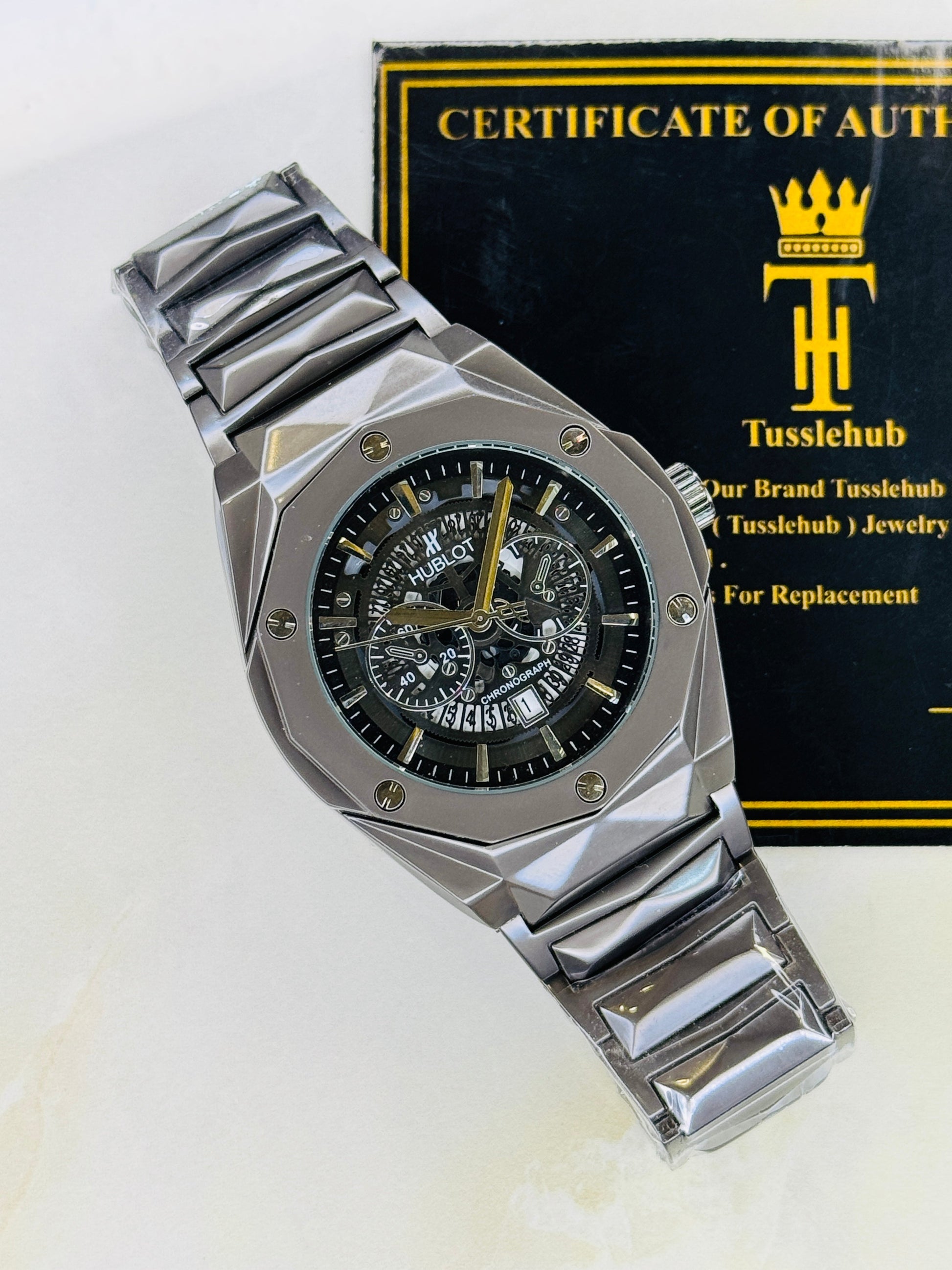 Black Prism Chain Strapped Hologram Dial Hublot Watch