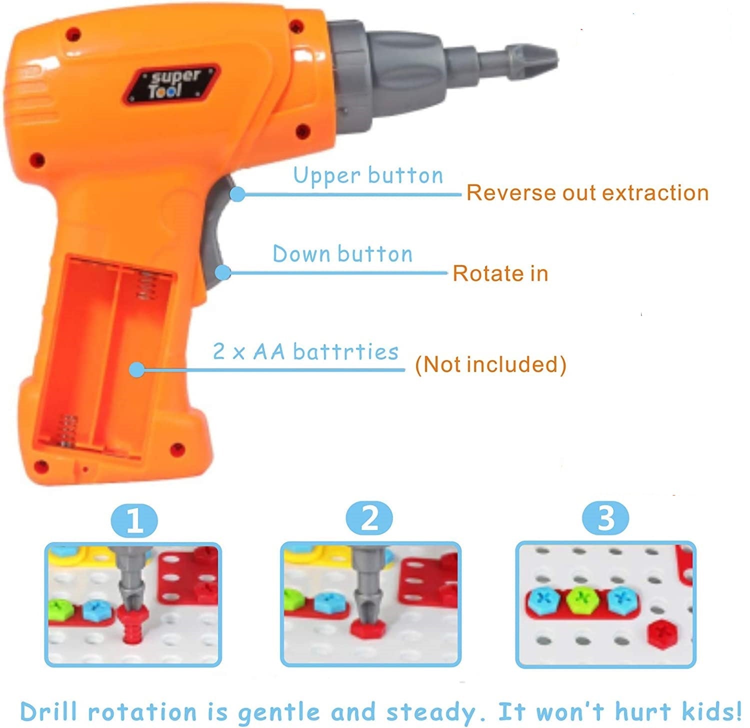 – Kids can use the drill and screw construction puzzle set to build countless models helping them develop problem solving skills, creativity and brain potential.