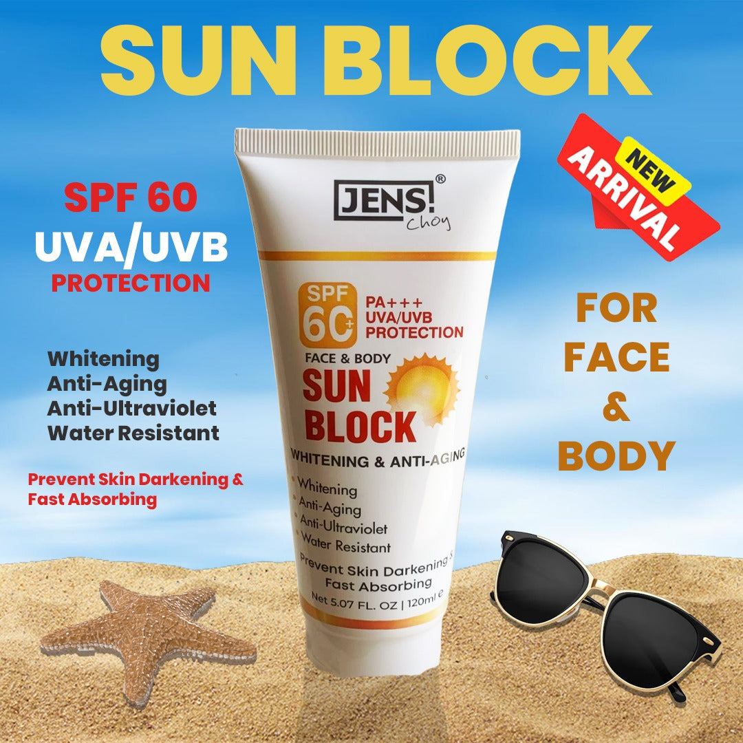 Protect your skin from harmful UV rays with JENS Sunblock ☀, featuring SPF 60 for maximum sun protection. Feel confident knowing this sunblock will shield your skin and prevent sun damage.