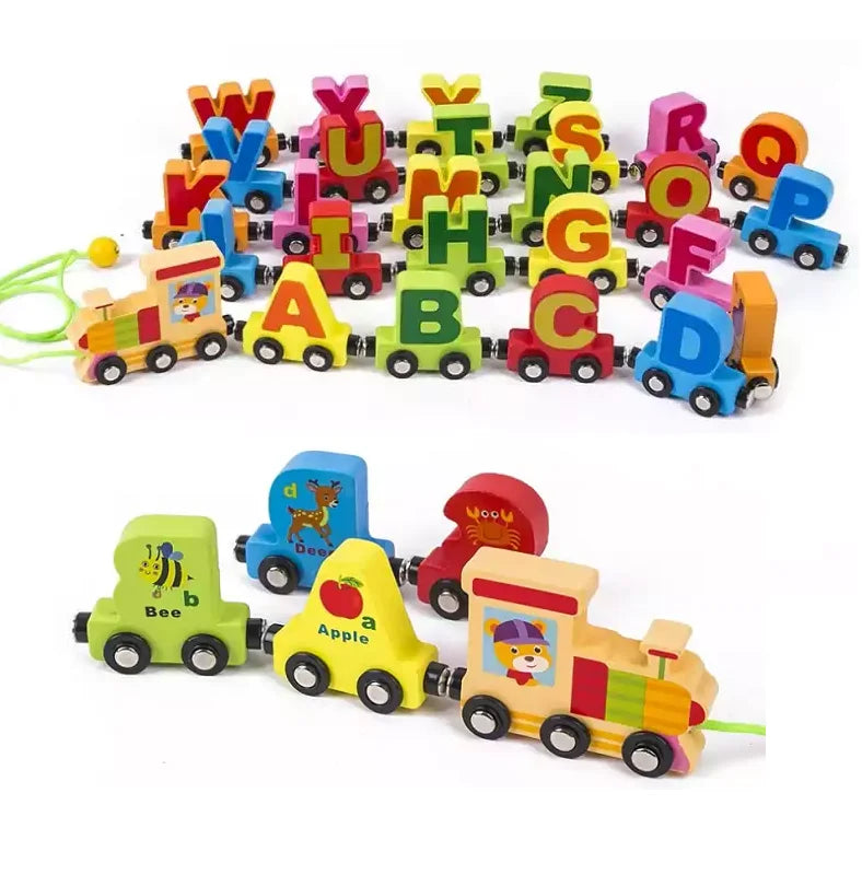 - The 26 wagons are connected with the help of magnets and each represents on one side a capital letter, and on the other a small letter and the image of an animal whose name begins with that letter.