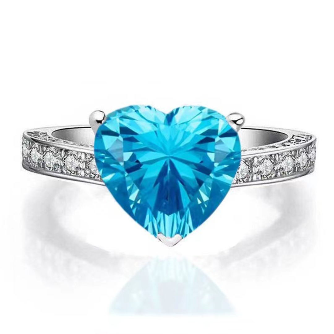 A ring for those with a big heart! Set your heart high with this authentic Blue Topaz ring with delicately set white topaz for even more bling. This sparkly beauty will have you and everyone else in a daze. At 3ct plus, it is not for the faint-hearted