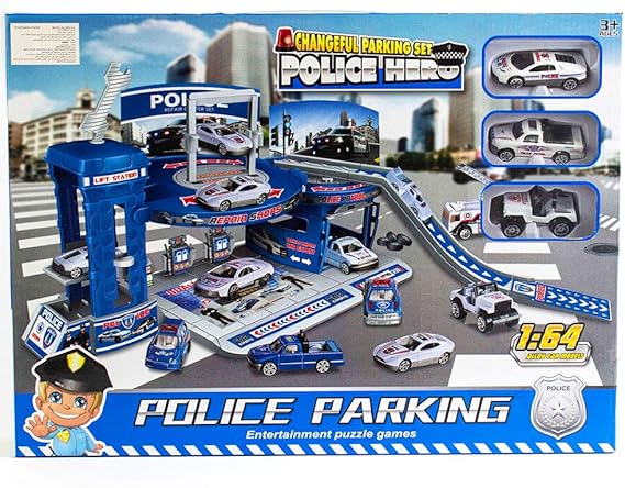 Police Parking (Garage) Track Set Toy, Multicolor, 1-64 ,Alloy Car Model
