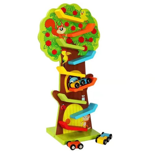 Wooden 9-layer ramp track & racing car play set for baby toddler developmental play toys.