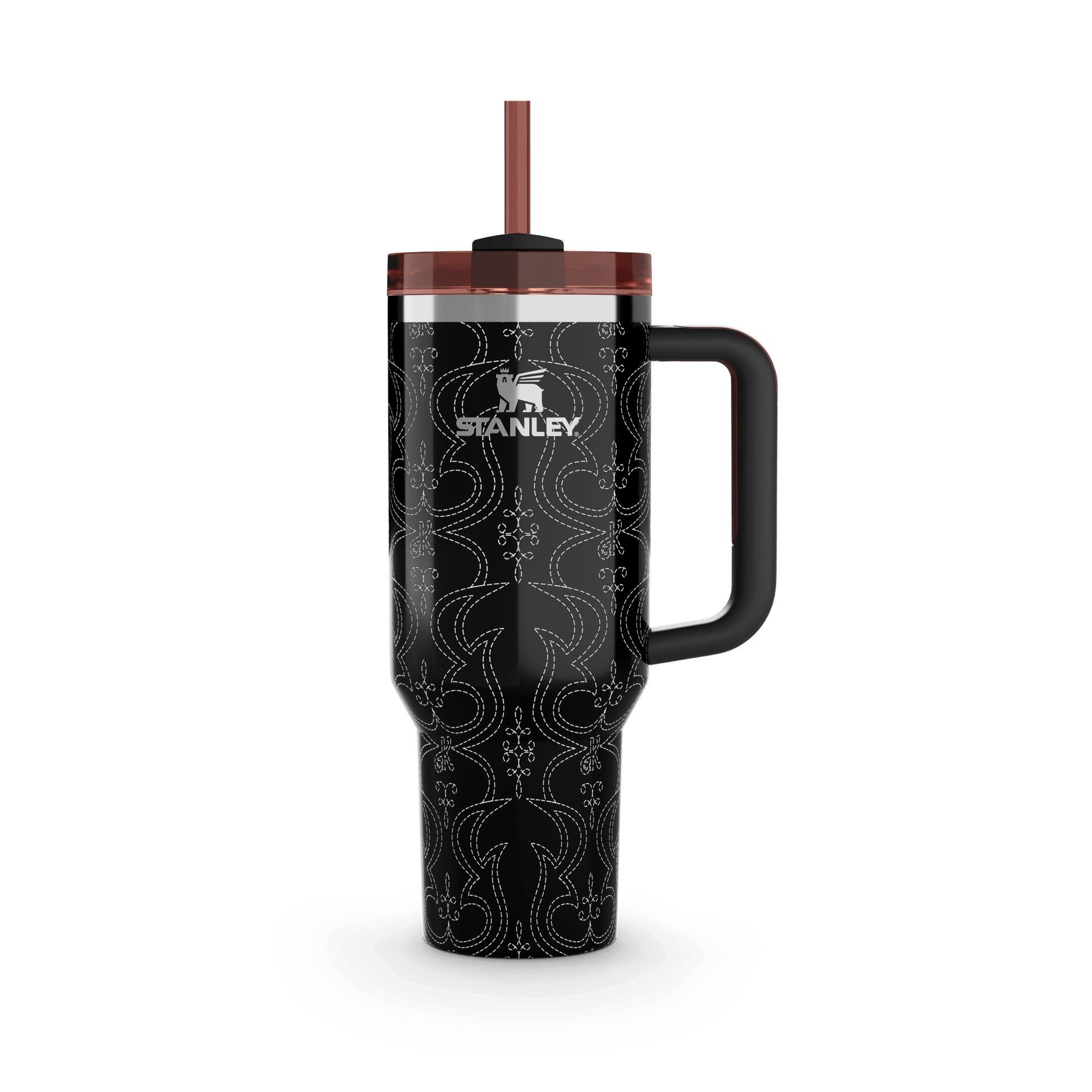 Lasso your own Western Ken™ Quencher in a Midnight-black. With a print that mimics the contrast stitching and silver buckle showcased on the Western Ken™ doll, stand tall—adventure’s calling.