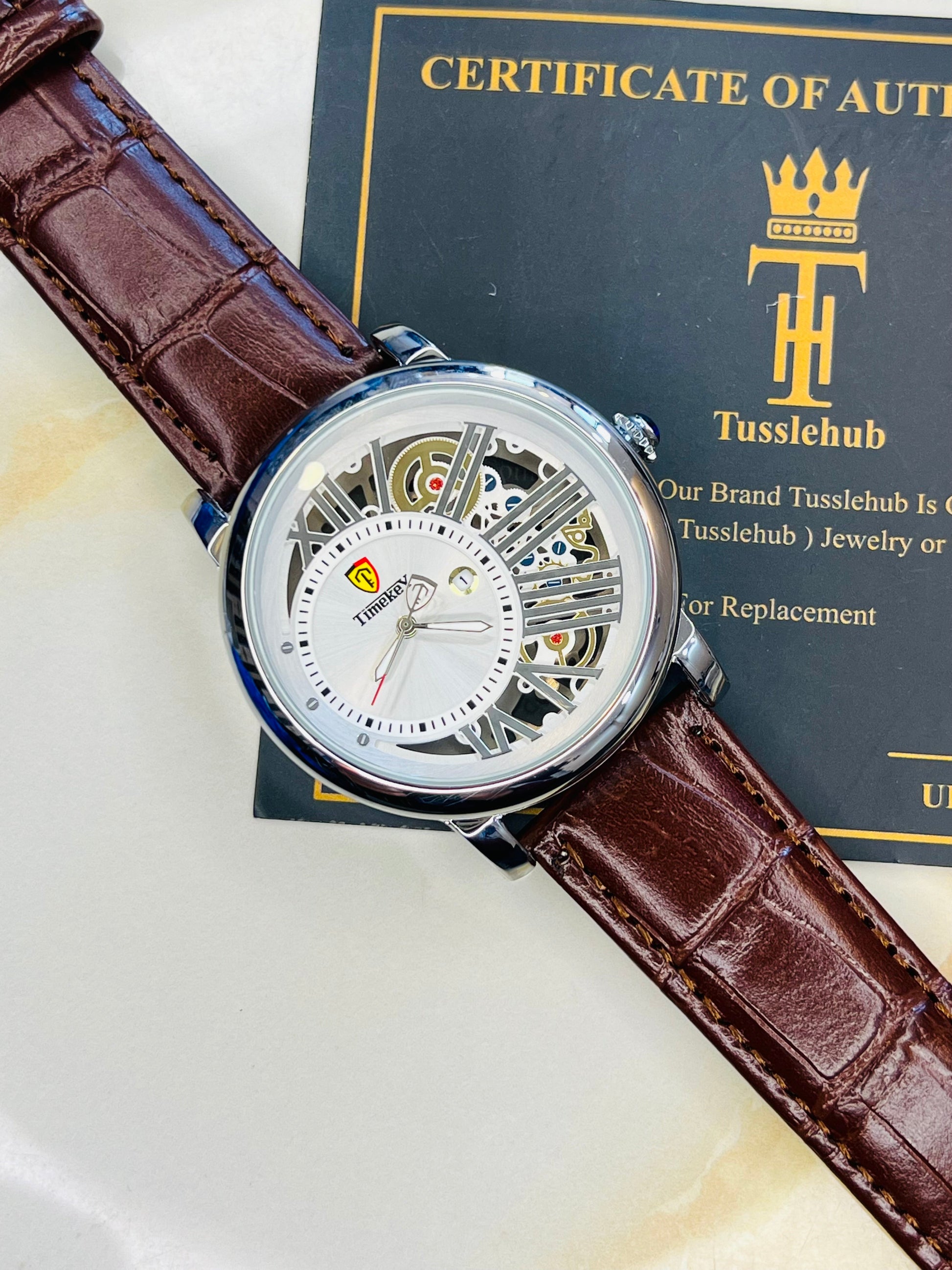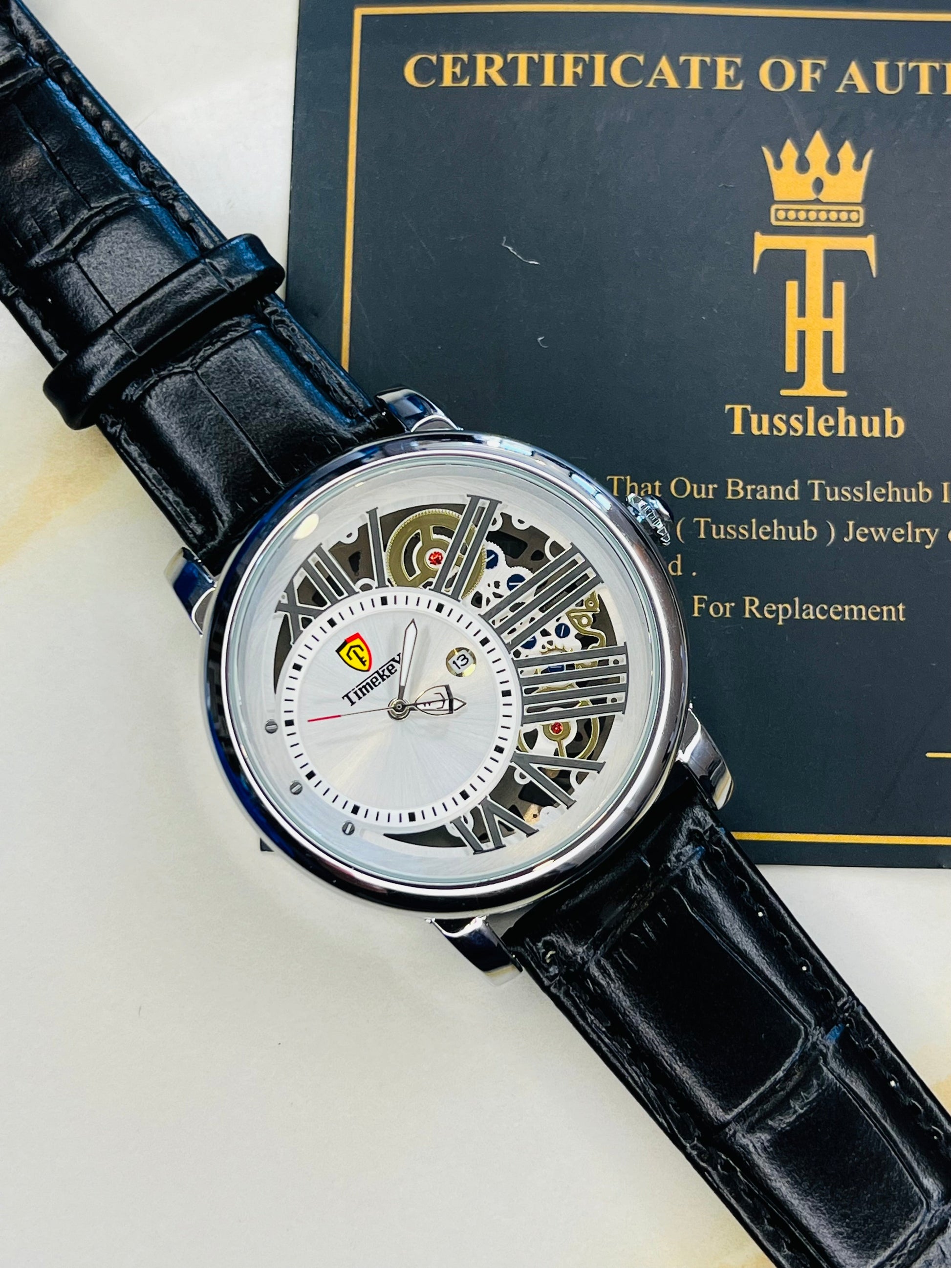 Time Key Partial Silver White Skeleton Dial Watch