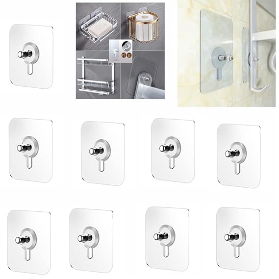 Wall Hooks for Hanging, Durable Practical Transparent Strong Adhesive Screw Wall Nail (Pack of 10)
