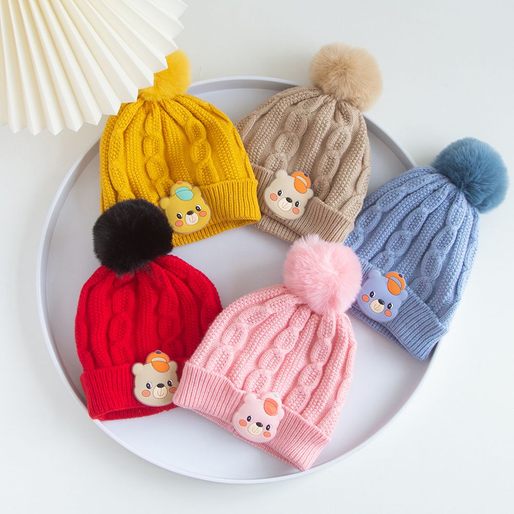 Winter Woolen Cap With 1 Pom Pom Cap Bear